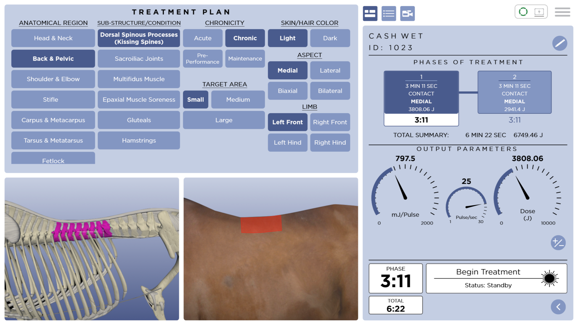 Select the Anatomical Region to be treated, the Sub-Structure/Condition of the problem, its Chronicity, the patients Skin/Hair Color and the size of the Target Area.